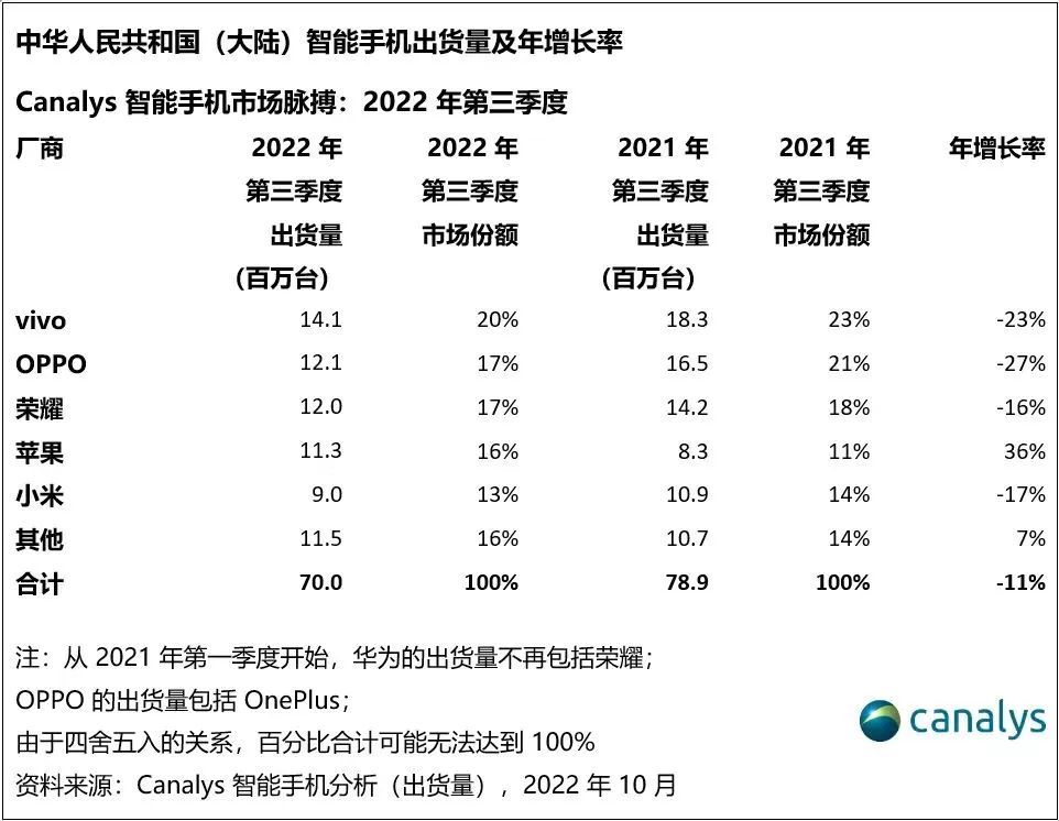 [2] Canalys:2022年第三季度,苹果增长难阻中国大陆智能手机市场下跌11%