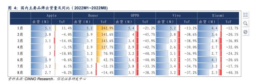 将目光放宽到全年,苹果1-8月的出货量虽然与OV小米相比,只能算得上非常稳定,但其实并不出彩。