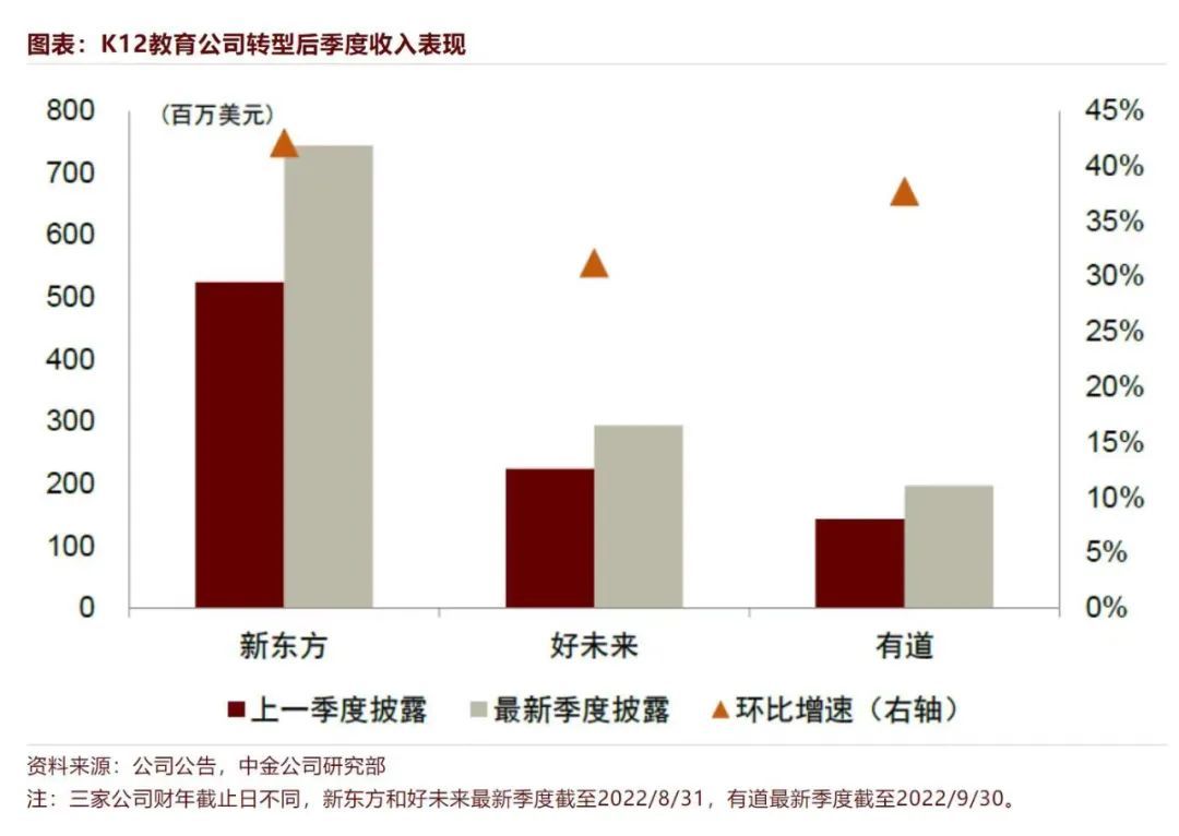 近日新东方、好未来、网易有道等头部教育上市公司发布最新财务报告,对于教育行业转型成果,中金近日发布研报认为,这是一个“破而后立,业绩修复可期”的赛道。