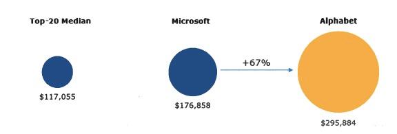 这封长达四页的信件还把矛头指向薪酬,称 Alphabet 为员工提供“硅谷最高的薪水”。信中称,根据提交给美国证券交易委员会 (SEC) 的文件,去年 Alphabet 一名典型员工的薪酬中值为 295,884 美元。根据标普全球的分析,这比 Alphabet 的竞争对手微软高出 67%,比美国 20 家最大的科技公司高出 153%。
