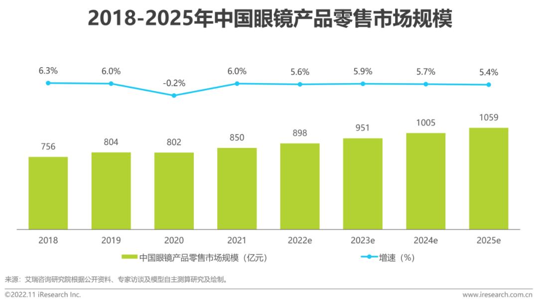 镜架行业保持平稳上升态势,2021年市场规模达309亿