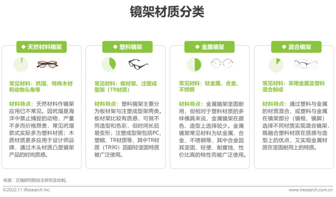 镜架以美观舒适为附加功能,材质选择受流行趋势影响