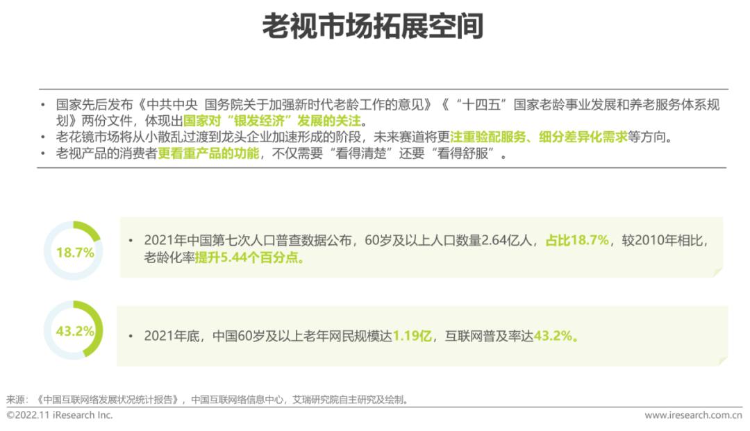 近年来,消费者购买偏好普遍体现出视力健康需求提升的态势,镜片市场亦逐渐布局细分化发展,从零售侧看,功能性镜片预期对门店店效的贡献将不断增加;从厂商侧看,国内外镜片厂商在功能性镜片产品开发迭代基础上也在积极推进产品认知与眼健康宣传科普。基于镜片产品的迭代更新趋势,在今后一段时间,强化功能性镜片产品认知与科学眼健康市场教育将是行业的重点。一方面,部分消费者对儿童青少年近视及防护的认知依然不足;另一方面,中国人口老龄化趋势不断加剧,老花镜渐进镜片市场拓展空间仍将持续扩大。