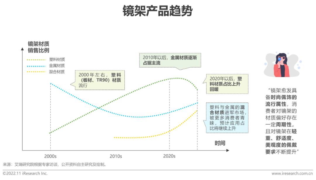 流行属性加强,消费者对镜架材质偏好存在一定周期性循环