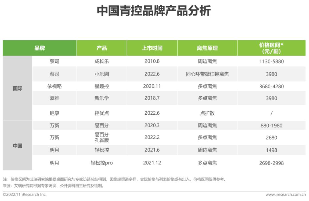 头部镜片厂商集中发力,青控市场产品供给梯队逐渐丰富