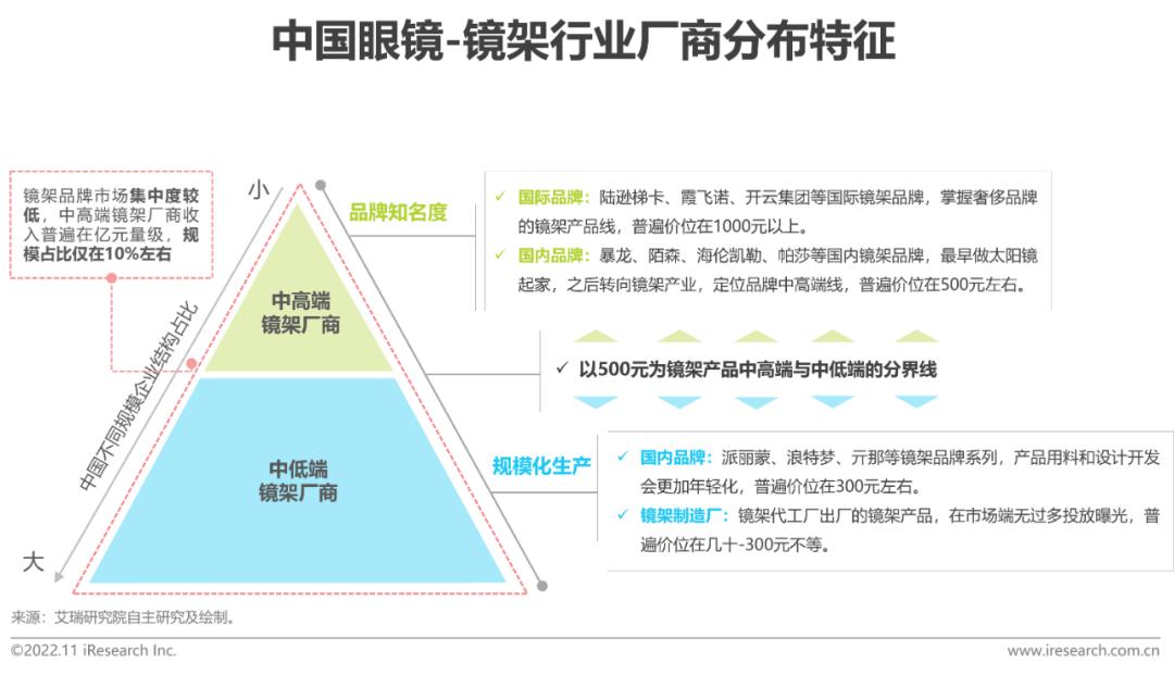镜架品牌市场集中度低,国货品牌逐渐在中高端产品线崛起