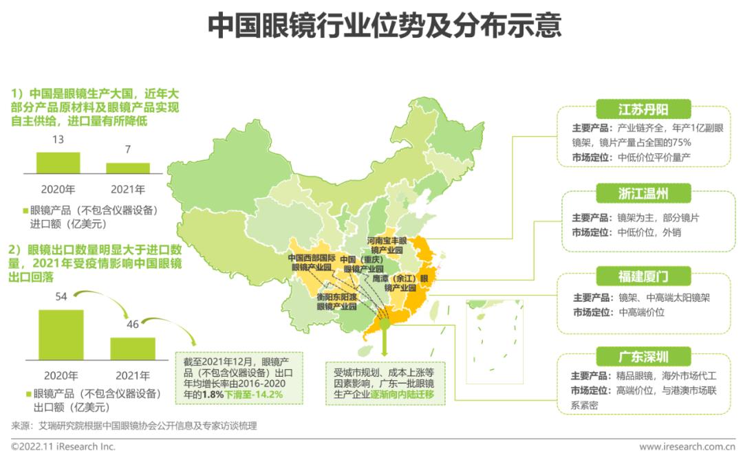 产品及原材料进出口减少,眼镜生产基地有向内陆迁移趋势