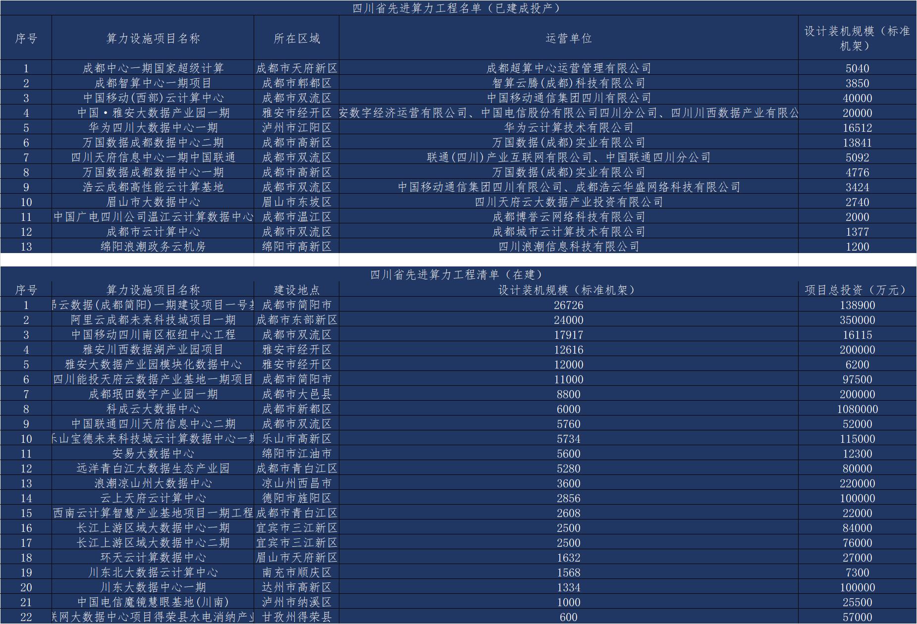 四川省先进算力工程清单