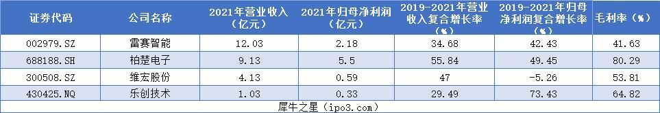 业绩方面,2019年-2021年,公司营业收入分别为6112.84万元、7363.94万元、1.03亿元,近2年复合增长率为29.49%;归母净利分别为1101.93万元、1575.44万元、3314.41万元,近2年复合增长率为73.43%。