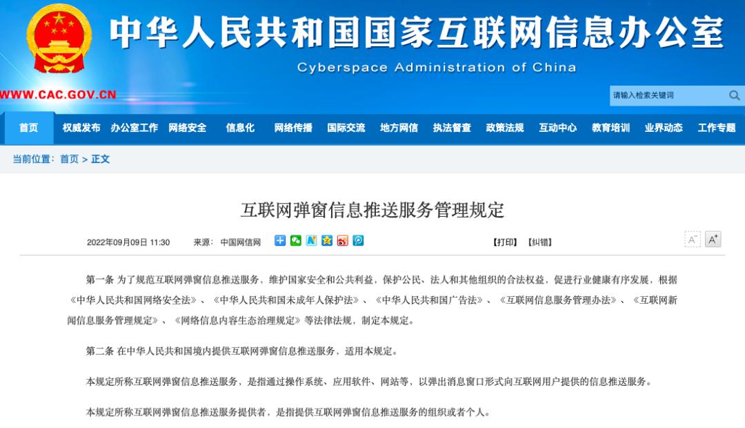 好消息是,9月30日,国家网信办、工信部和国家市场监管总局联合发布了《互联网弹窗信息推送服务管理规定》。