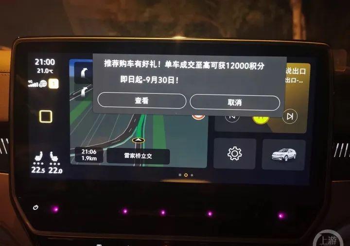 今年9月,一位一汽大众ID.6CROZZ的车主表示,自己在驾驶新买的车辆正常行驶,使用车载导航的时候,中控大屏上突然弹出了购车优惠的广告。