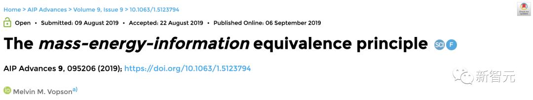 根据Vopson博士提出的质量-能量-信息(M/E/I)等价原理,质量可以表示为能量或信息,反之亦然。由此可以得出,信息比特也必须具有一定的质量。