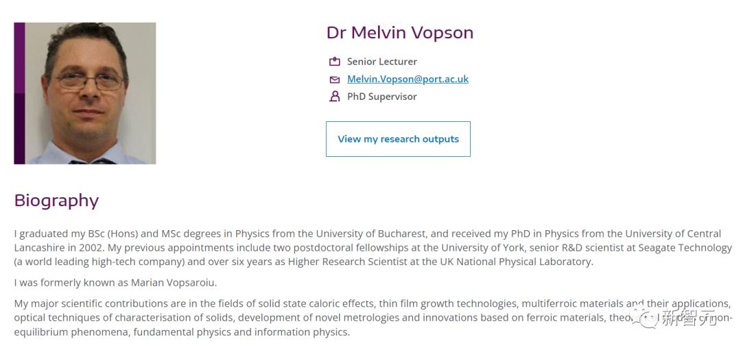 Melvin M. Vopson是朴茨茅斯大学的一名博士生导师。