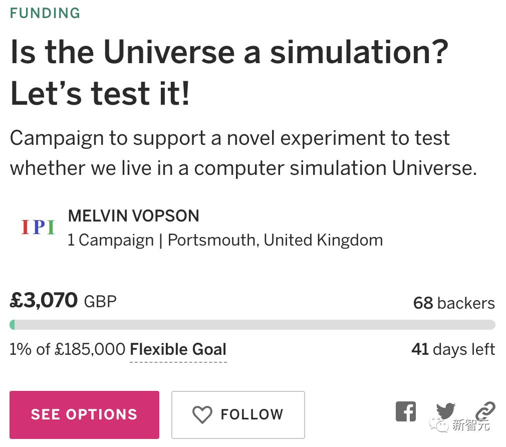 Vopson博士估计,建造和执行实验所需的资金为18.5万英镑,并希望在这次活动中能筹集到8.5万英镑,之后通过向英国研究资助机构申请资金来补充剩余的差额。