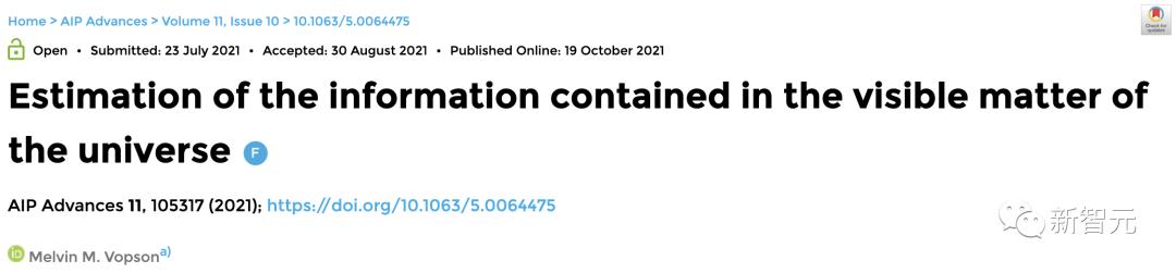 在2021年发表的论文中,Vopson博士计算了宇宙中所有基本粒子所包含的信息量。