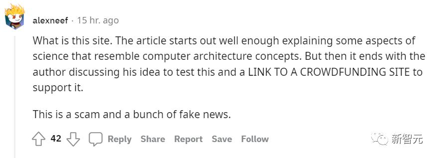 「这篇文章开始是在解释一些与计算机架构概念相似的科学。但最后,作者却把你带到了一个『众筹网站』。这显然是一个骗局和假新闻。」