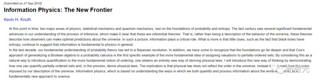 在这篇发表于2010年的信息物理学论文中,科学家表明:物理学的两个主要领域,统计力学和量子力学,都建立在概率和熵的基础上。