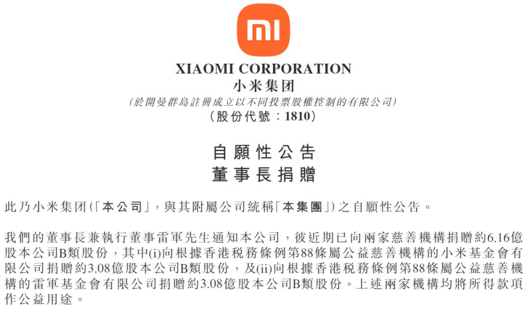 互联网大佬包揽慈善榜前三的主要原因都是股票捐赠。刘强东向第三方基金捐赠了6237.66万股京东B类普通股,王兴向以他名字命名的基金会捐赠了5731.9万股美团股票,雷军向小米基金会、雷军基金会共捐赠6.16亿股小米股票。