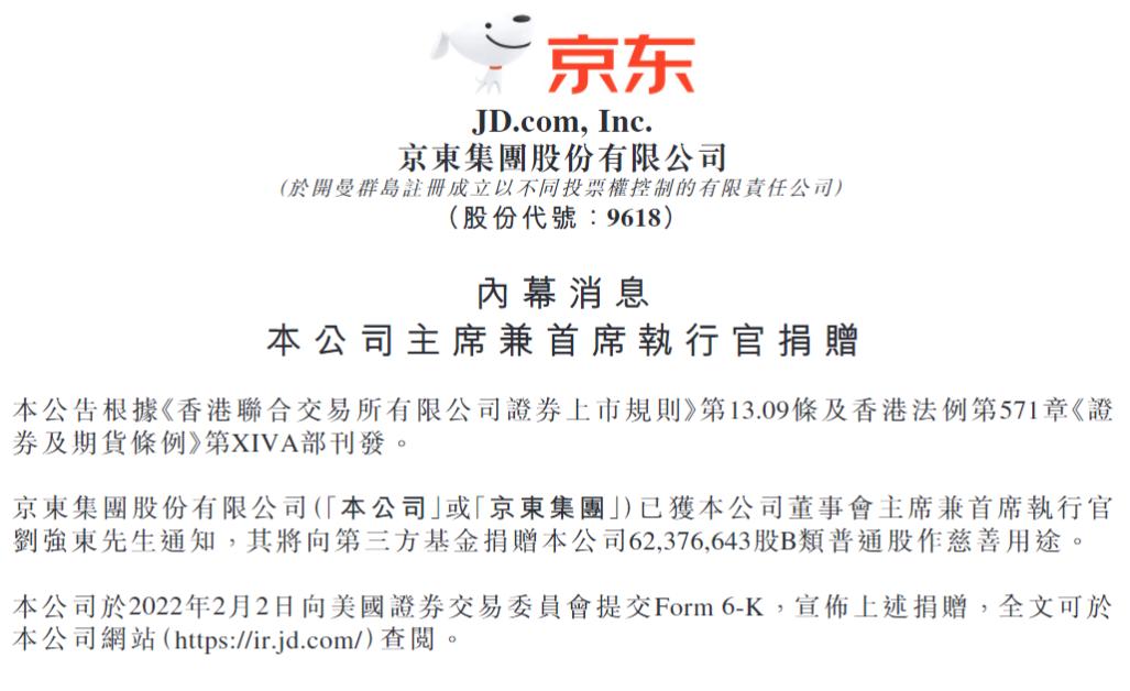时间来到2022年,刘强东一次性将6000余万京东股票捐赠出去。