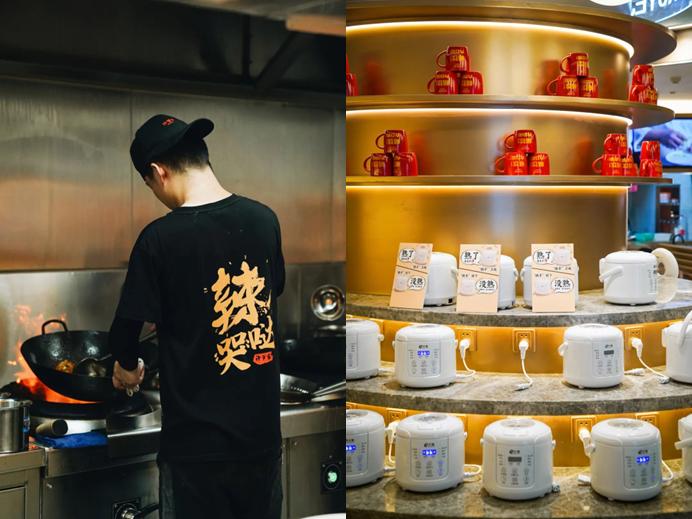 许爷家·湖南热炒主打下凡的爆炒仔鸡、辣椒炒肉和开胃鱼头,进门还有一整片区域,摆满MINI电饭煲,选用五常大米。官方推文称,取这样的名字是为了打造许爷的品牌矩阵。