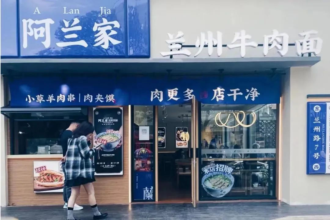 阿兰家牛肉拉面,除门店装修风格更加时尚外,产品品类与普通的兰州拉面店相差不大。一碗牛肉面18元的定价,也走起了亲民路线。目前在南通和苏州共开出3家门店。