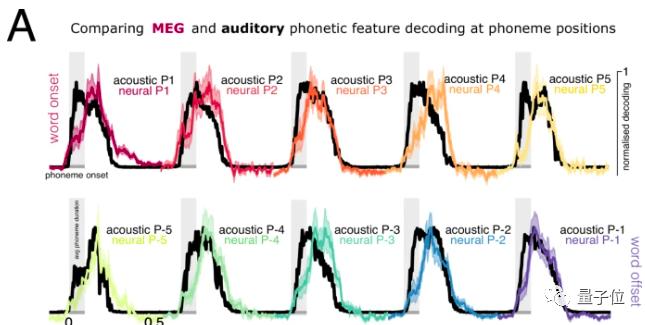 下图比较了连续音素输入下,听觉系统声音输入及神经系统反应的同步解码情况,能看出两者同步进行: