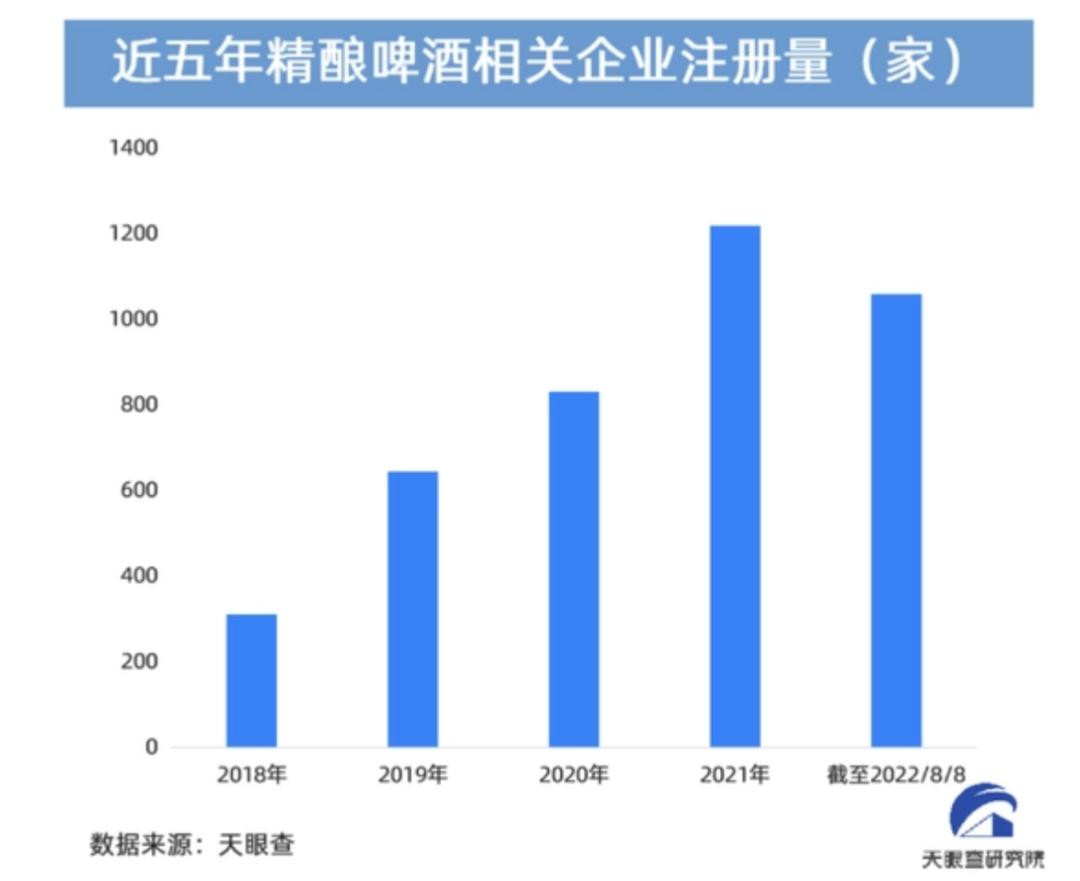 比如精酿啤酒的兴起,满足了新一代消费者对高品质啤酒的需求。据天眼查专业版APP数据显示,近五年,精酿啤酒相关企业新增注册数量均保持高速增长,年平均增速达95%。截至目前,2022年共新注册1,000余家精酿啤酒相关企业,相比较于去年同期增长34.5%。