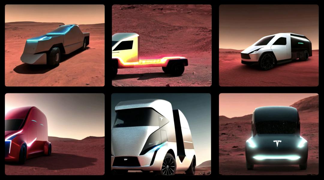 现场,特斯拉的首席工程师 Rajiv Kurian 分享了在 Dojo 系统上运行 Stable Diffusion,根据“火星上Cybertruck”的提示创建由 AI 生成的图像。