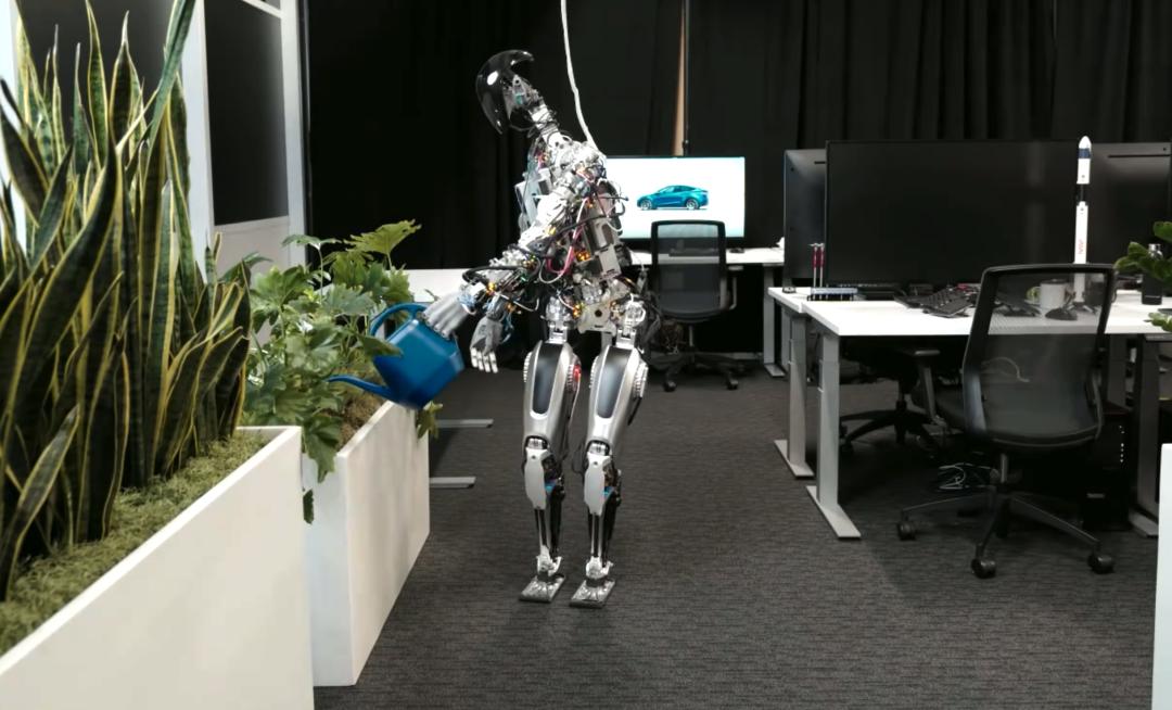 与这些工业机器人——机械臂相比,Optimus 擎天柱原型机已经具备了更加丰富的操控性,可以在特斯拉的制造车间实现简单的搬运货物,或者在办公室里帮同事们浇花拿快递。