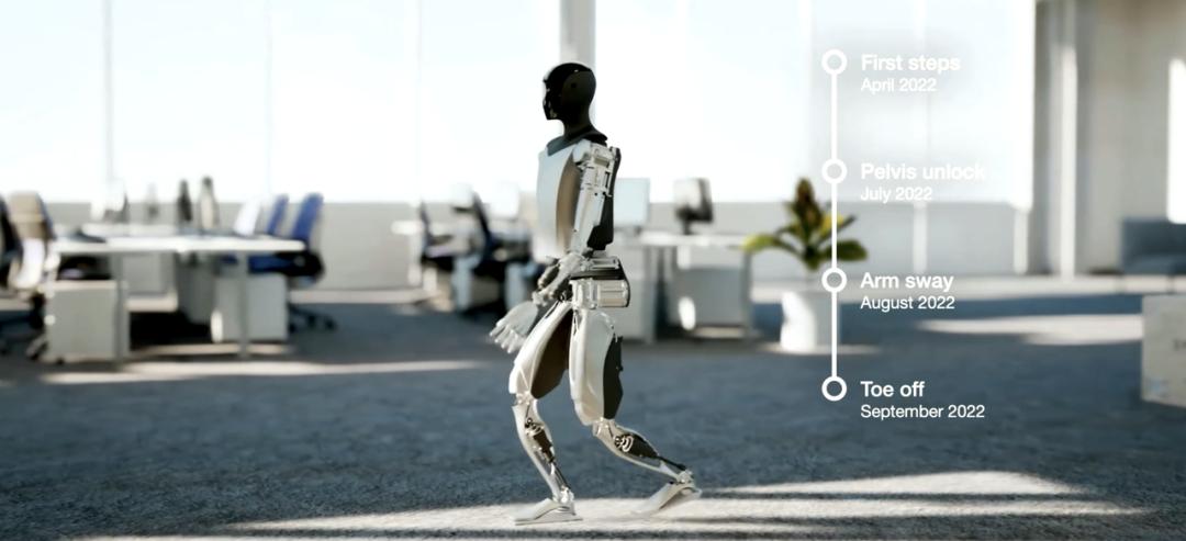 - 2022年 9 月,特斯拉如期发布了擎天柱 Optimus 的原型,Optimus 实现趾间离地动作;