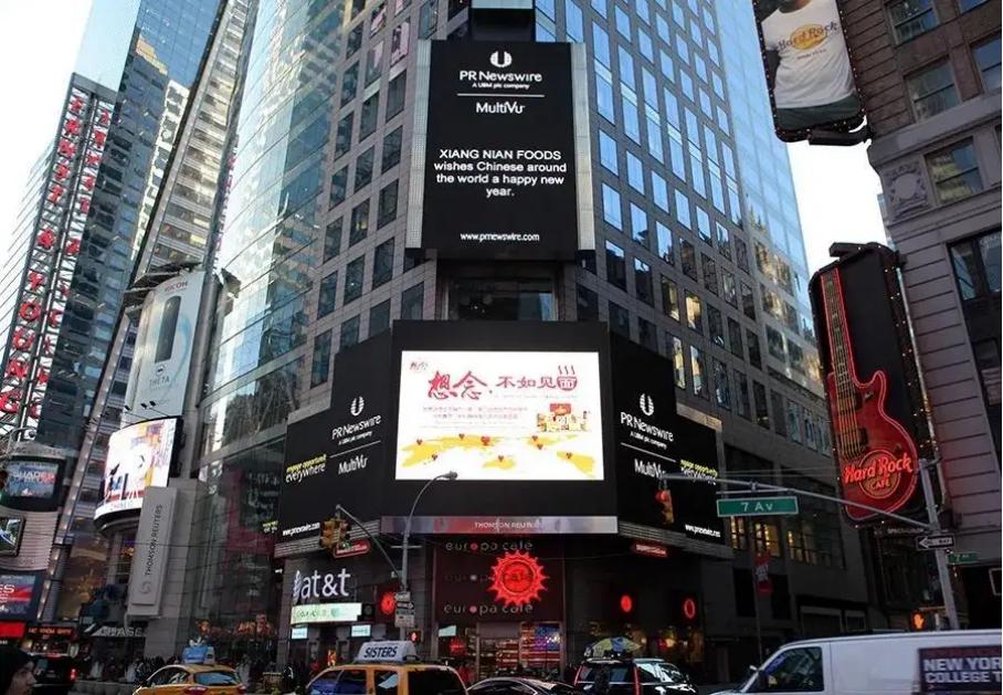 随着生意慢慢做大,经营步入了正轨,孙君庚也与时俱进,重视电商渠道的铺设,也加强了营销的输出,2016年春节期间想念食品还出现在了美国纽约时代广场的巨型屏幕上。