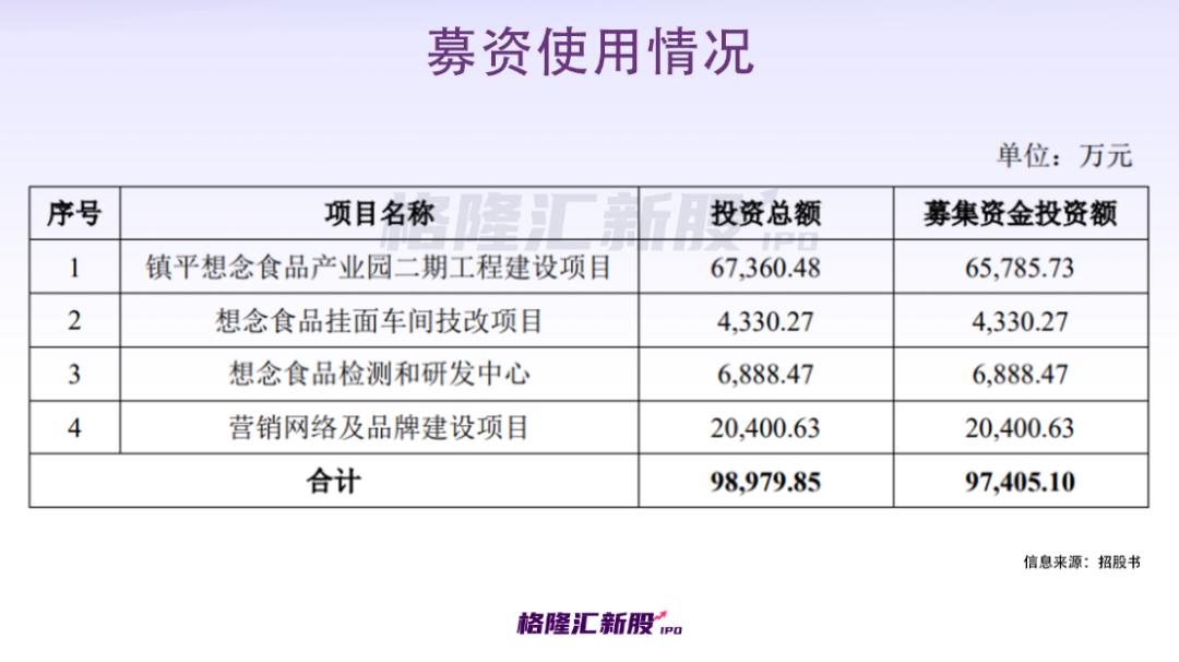 而本次IPO拟募资9.74亿元,其中有6.58亿元用于镇平想念食品产业园二期工程建设项目,进行扩产,项目达产后公司挂面产品年生产能力将增加15.36万吨。