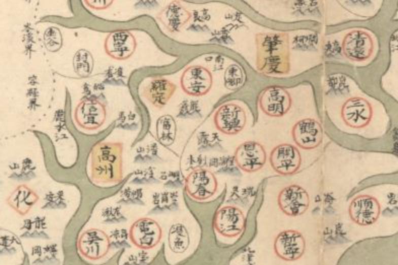 清朝广东地图上的天露山(图片中央) 图源:网络截图