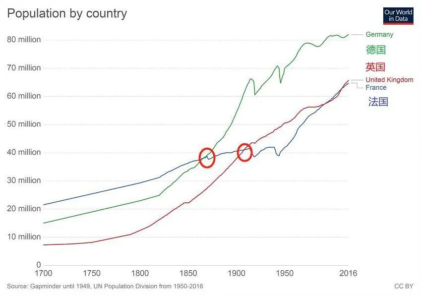 1866年,德国人口超过法国,1909年,英国人口规模又超过法国。