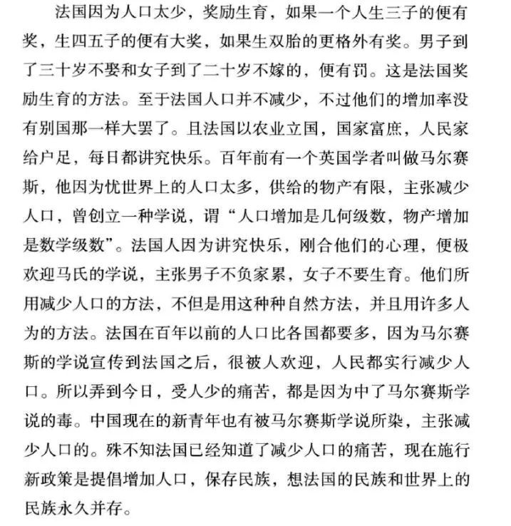 马尔萨斯的观点在英国没引起太大关注,反而是翻译成法文后,法国举国震动,开始控制人口。