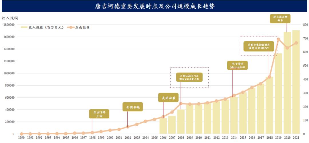 截至2020年,唐吉诃德(集团名称:泛太平洋国际控股)以近800家门店,16819亿日元收入(约1000亿人民币)的收入,成为日本收入排名第4的零售企业。