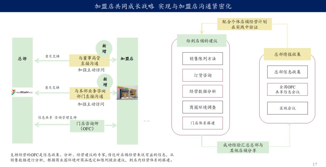 自2018年开始,他的经营效率出现了瓶颈。从上图可见,近15年,7-Eleven的发展速度逐渐放缓。在近几年的年报里,7-Eleven每年都会强调变革,并且年报里会check上一年的变化。在加盟店与总部的沟通问题上,除了门店咨询师(OFC外),新增了董事级别的高管,加盟店可以直接与其沟通。