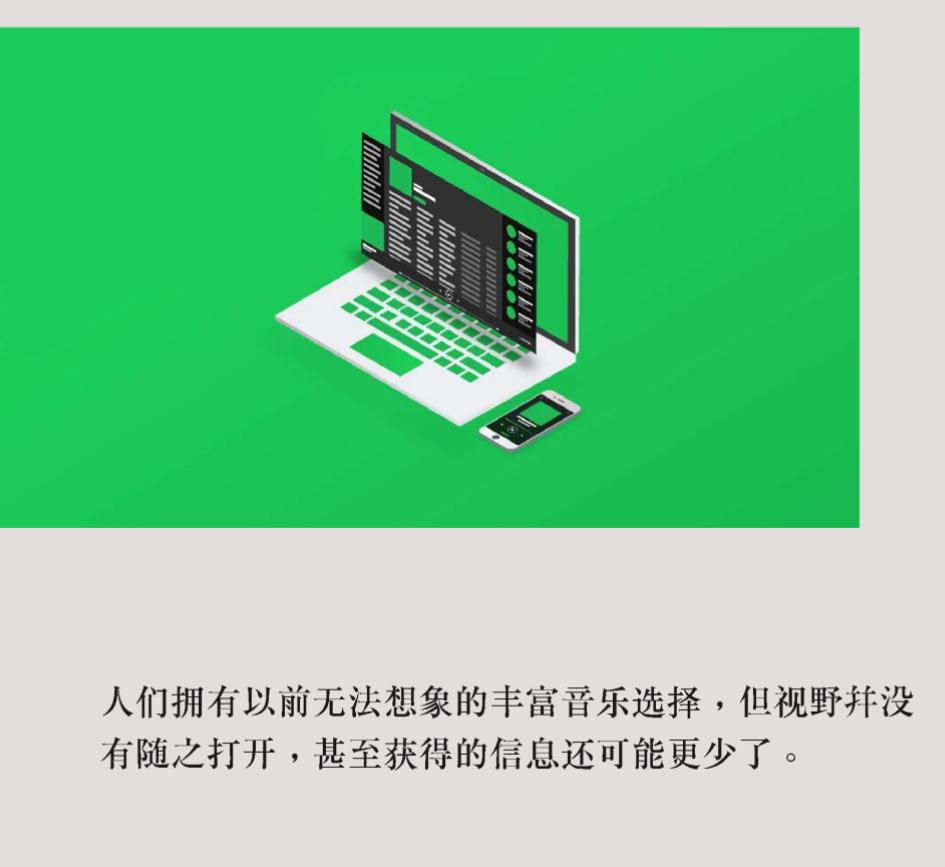 在以Spotify 为代表的流媒体平台的推动下,用户越来越多地收听由算法或人工准备的播放列表,而不是自己主动选择音乐。播放列表越来越普遍,一天中的每一刻都有一个播放列表:起床、早餐、锻炼、放松、冥想、跑步、聚会等。只需要单击下按钮,接下来的30分钟或整个晚上你就安心听音乐吧。