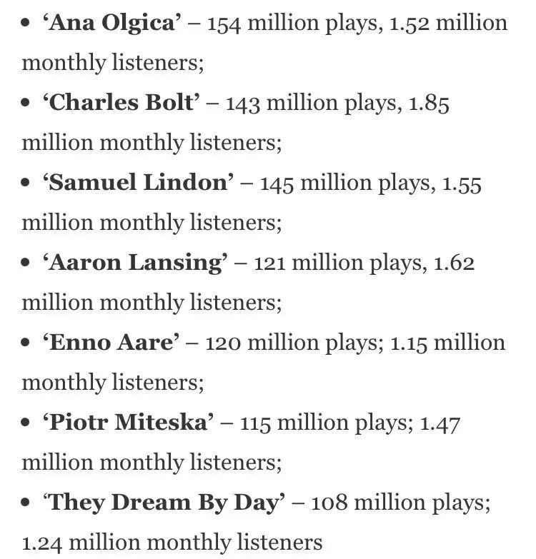 当流媒体平台对收听的内容又足够的控制力时,自然就会通过操纵播放列表来换取经济利益。譬如,多年来,Spotify的环境音乐播放列表一直由匿名的词曲作者和音乐人主导,他们拥有数以百万计的播放,而像Brian Eno和Bibio这样知名的音乐人则被排除在播放列表之外。有统计发现,Spotify 的 ambient chill播放列表中超过90%的曲目来自这些神秘的病毒音乐人,所有这些音乐都来自于一家叫做Epidemic Sound的瑞典制作公司。这些音乐人中的前50位已经累积了近30亿次播放量,而Spotify最具影响力的播放列表RapCaviar的播放量也不过70多亿次。