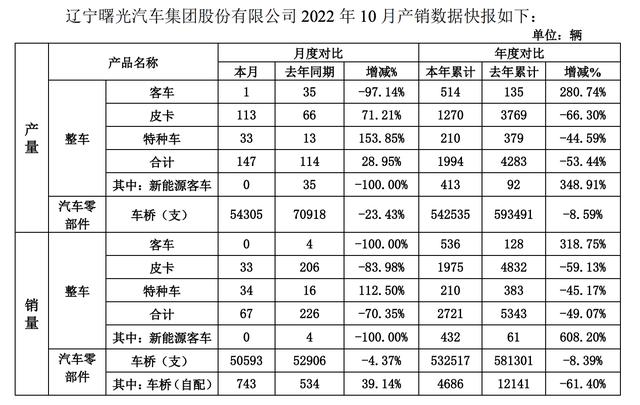 刚刚过去的第三季度,ST曙光营业收入降至4.74亿元,亏损0.81亿元。2022年前10个月,ST曙光累计汽车销量只有2721台。