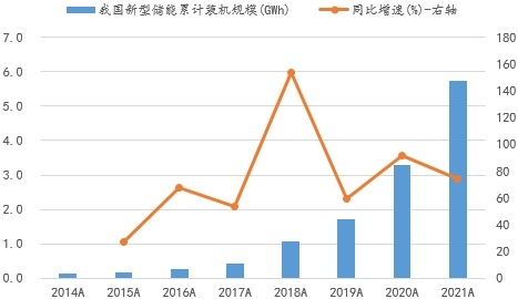 我国已投运新型储能累计装机及增速示意图