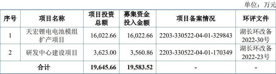 IPO募资方面,本次公司拟募资1.95亿元,资金将用于天宏锂电电池模组 扩产项目、研发中心建设项目等。项目建成投产后,将进一步提升公司的产能,持续提升公司的盈利能力。