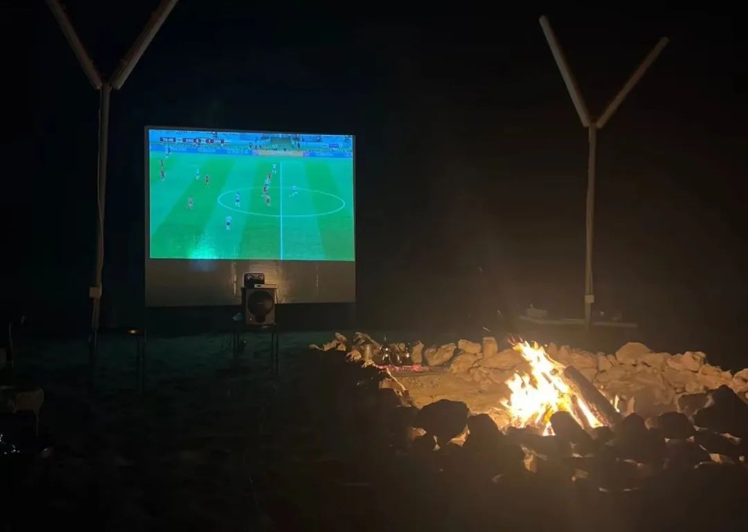 童绍剑介绍,因为中东地区白天日照太强、气温较高,人们喜欢晚上在庭院里点上篝火,拉起幕布,围坐在一起看球。投影仪自然是必不可少的道具。