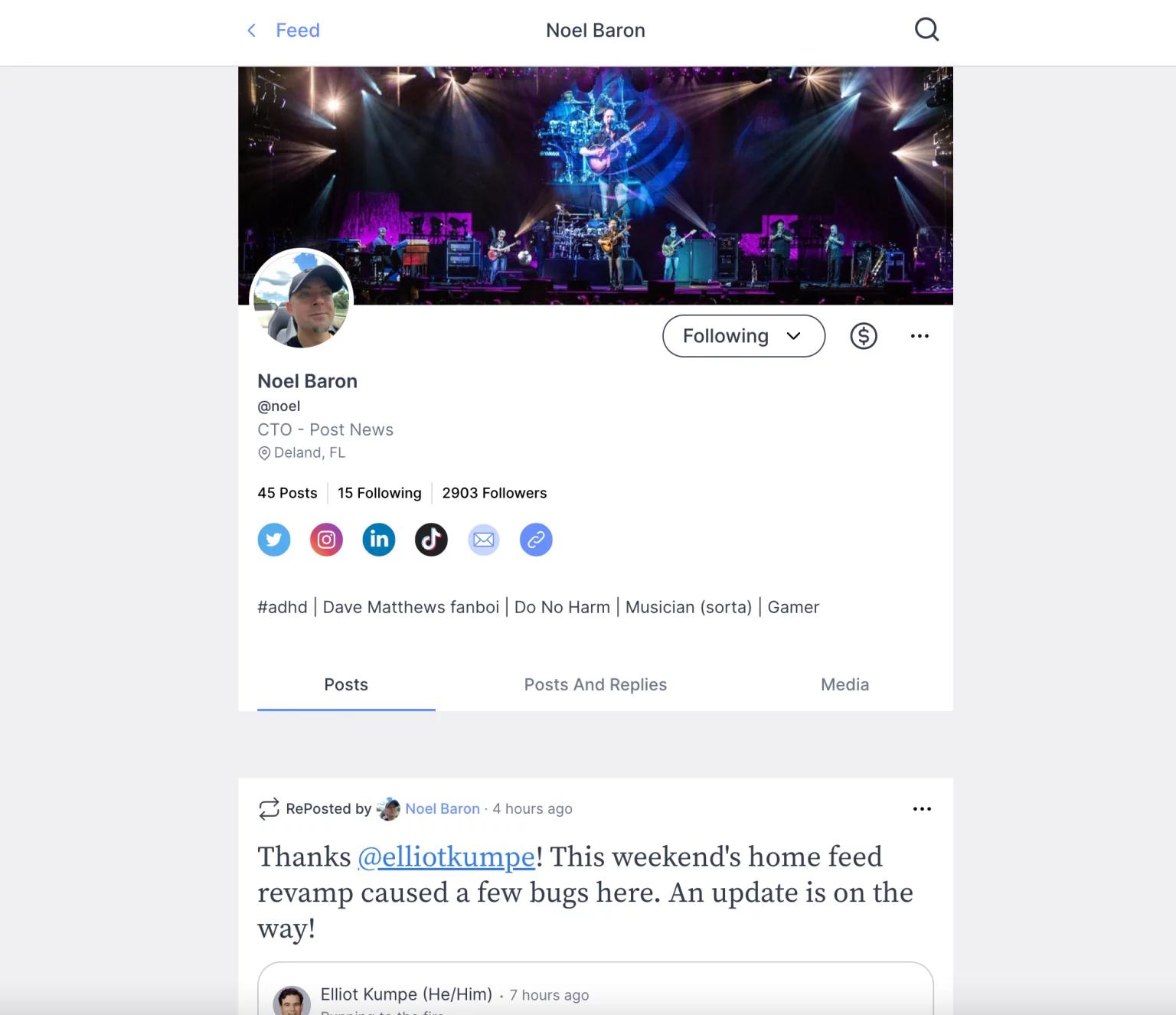 「Post News」具备Twitter的基本功能:发帖、点赞、转发、关注等,但在目前的测试版中尚不支持私信和无障碍功能。换言之,用户无法为图片添加alt文本,这也遭到了部分用户的批评。
