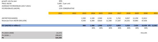 第二个因素是AR/VR产品不会在2023年推出的情况,从而将推进推迟到未知日期。在这种情况下,我们的内在价值将只包括未来几年的回购和当前产品的预测。