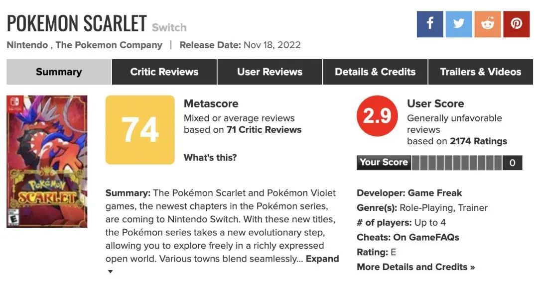 其中《精灵宝可梦 朱》更是跌破三分,仅仅拿到 2.9 分。