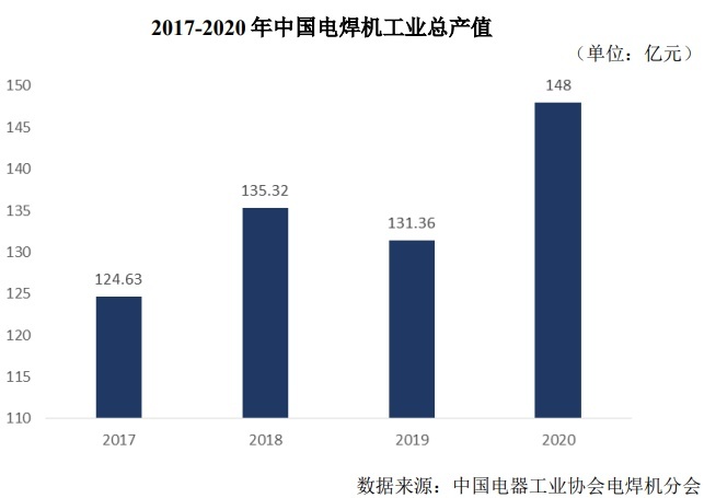 据了解,电焊防护面罩是焊接产业从业人员的劳动防护用品,焊接产业的持续发展将直接推动电焊防护面罩行业市场需求的增长。另外根据中国电器工业协会电焊机分会的数据显示,中国电焊机工业总产值由2017年的124.63亿元增长至 2020年的148亿元。未来随着我国“新基建”等基础设施的大规模开展,电焊防护面罩将迎来新的发展机遇。