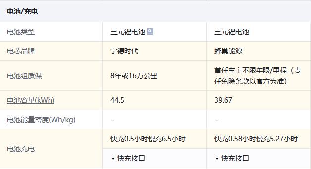 动力系统、智能互联上旗鼓相当,在座椅配置上保持一致,电池容量低但也有补救措施:慢充快一个小时、首任车主能够享受无限期的电池组质保。
