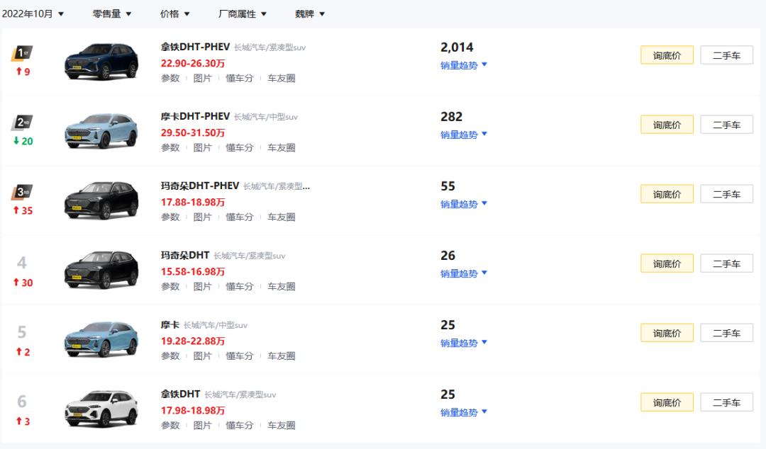 (长城魏派系列十月份销量 图源:懂车帝)