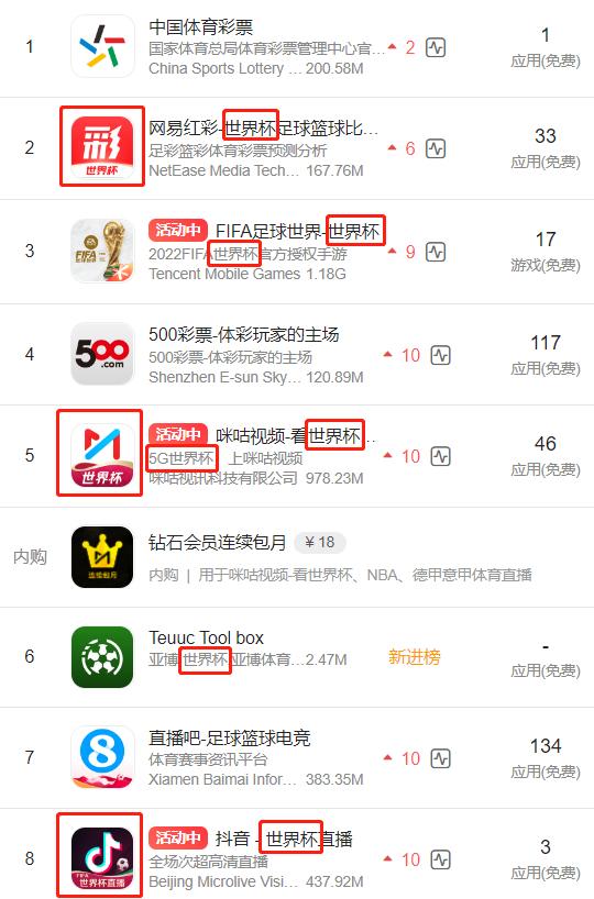 借力世界杯,数款App排名飙升!